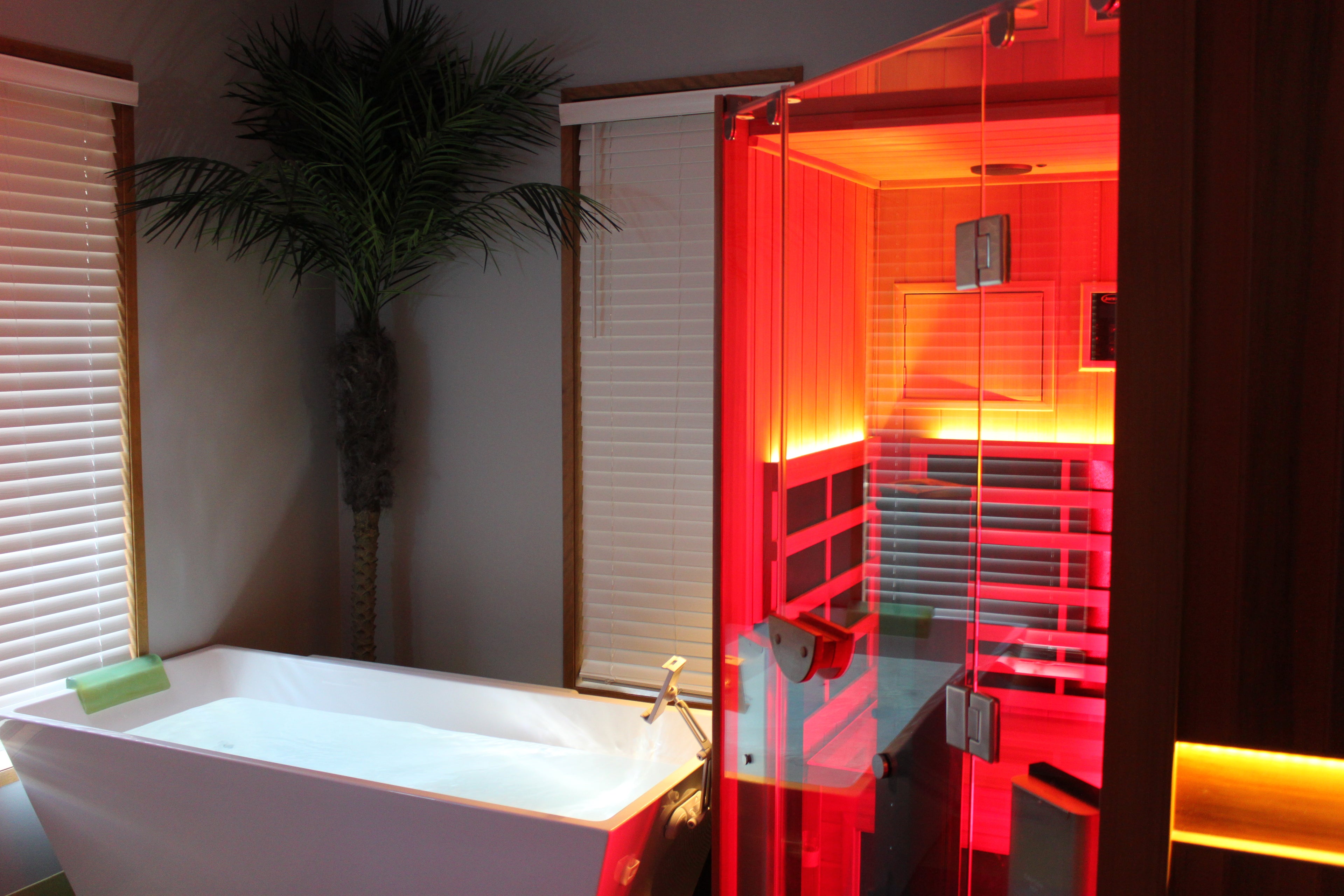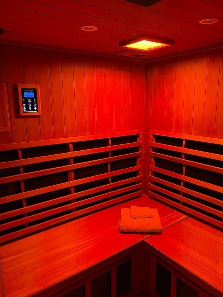 For the best experience, we recommend wearing no clothing since this is a private session. If using the red light, exposing as much skin as possible is ideal. Alternatively, wear loose clothing that allows your body to breathe. Don’t forget to towel off during your session to help your body perspire more freely.